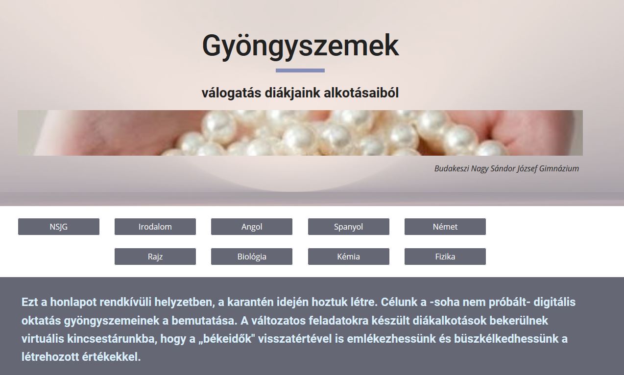 Gyöngyszemek Íme egy kis ízelítő az online oktatás idején született alkotásokból. (A tanév még nem ért véget, a gyűjteményt is tovább bővítjük.)